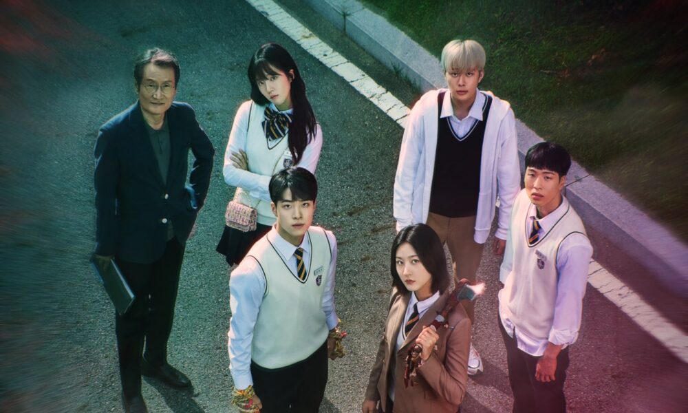 The promotional image, released on the 21st, features main stars Kim Sae-ron (Nobody Knows) and Nam Da-reum (Start-Up) and supporting cast members Moon Sung-keun (When My Love Blooms), Yoo Seon-ho (Undercover), Lee Ji-won (Hospital Playlist 2), and Yoon Jung-hoon (At a Distance, Spring Is Green). They are gazing up, looking determined and unwavering, as if they are ready to face and unravel the strange events that will unfold as they face evil spirits.